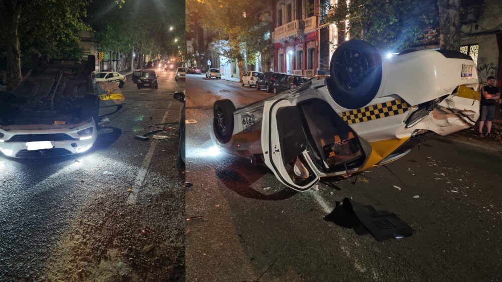 Choque en Palermo terminó con un taxi dado vuelta y dos personas lesionadas