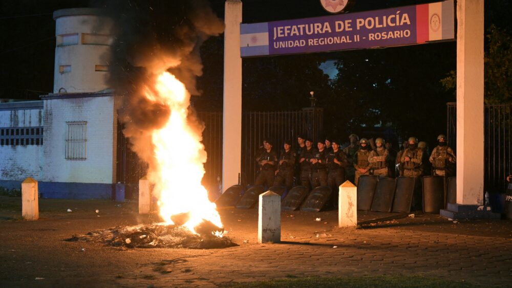 Decenas de policías quemaron cubiertas en reclamo de mejoras salariales y de atención a la salud mental en la ciudad argentina de Rosario