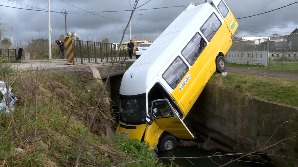 Camioneta escolar con niños dentro chocó con un auto y cayó en una cuneta