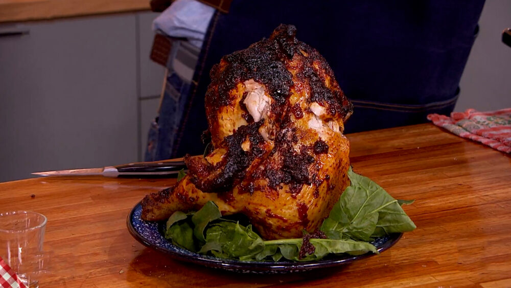 Beer can chicken con salsa barbacoa casera