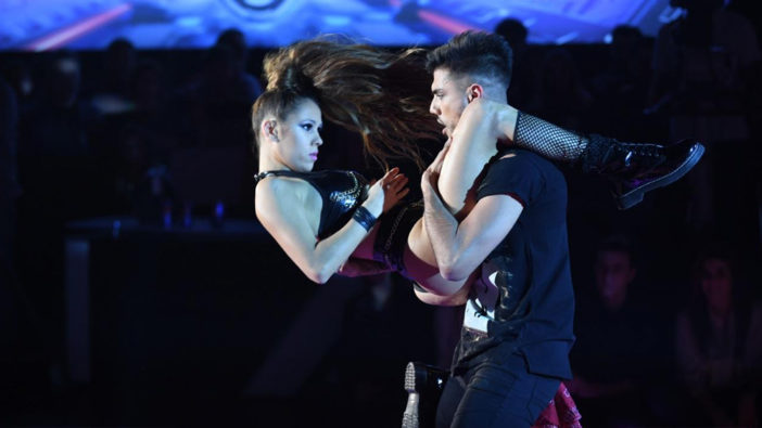La última gala de la semana arrancó con la presentación de Tyago Griffo, quien interpretó junto a Barby Silenzi “Pierdo la cabeza”, de Zion & Lennox. “¿Cómo viene la relación con Rocío (Robles)? ¿Se va afianzando?”, le preguntó en la previa Marcelo al “Bombo”. “Estamos conociéndonos. Todavía no es novia, es una relación sin rótulos”, contestó, antes de darle un beso y de que su coreografía con Barby también terminara con un beso. A la hora de las devoluciones, Ángel De Brito (8) le dijo a Gladys, en alusión a Rocío: “Tené cuidado con lo que metés en tu familia”. Sobre la performance, sostuvo: “Me gustó. Se desplazaron por la pista y el juego de pantalla estuvo muy bien”. Carolina “Pampita” Ardohain (voto secreto) analizó: “A Tyago lo vemos haciendo pasos nuevos. Tal vez le falta mover un poco más la pelvis. Son una pareja equilibrada”. Lolo Rossi (6), quien reemplazó a Moria Casán hasta que llegó del teatro, le pasó factura a Tyago: “Yo, que veo el detrás, creo que a veces te comportás como un niño caprichoso. El trabajo en equipo es fundamental”. En tanto, Marcelo Polino (6) completó: “Me gustó lo que hicieron. Van por buen camino”. Total: 20 puntos. Para ponerle cuarteto a la noche, Tyago y su banda, Trulalá, interpretaron los temas “No voy a volver a llorar” y “Como tú”.