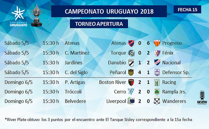 07/05/2018, 07:21 FOTO: focouy Nacional ganó y se coronó campeón del torneo. Peñarol quedó solo dos puntos abajo. Los resultados registrados:La tabla de posiciones: