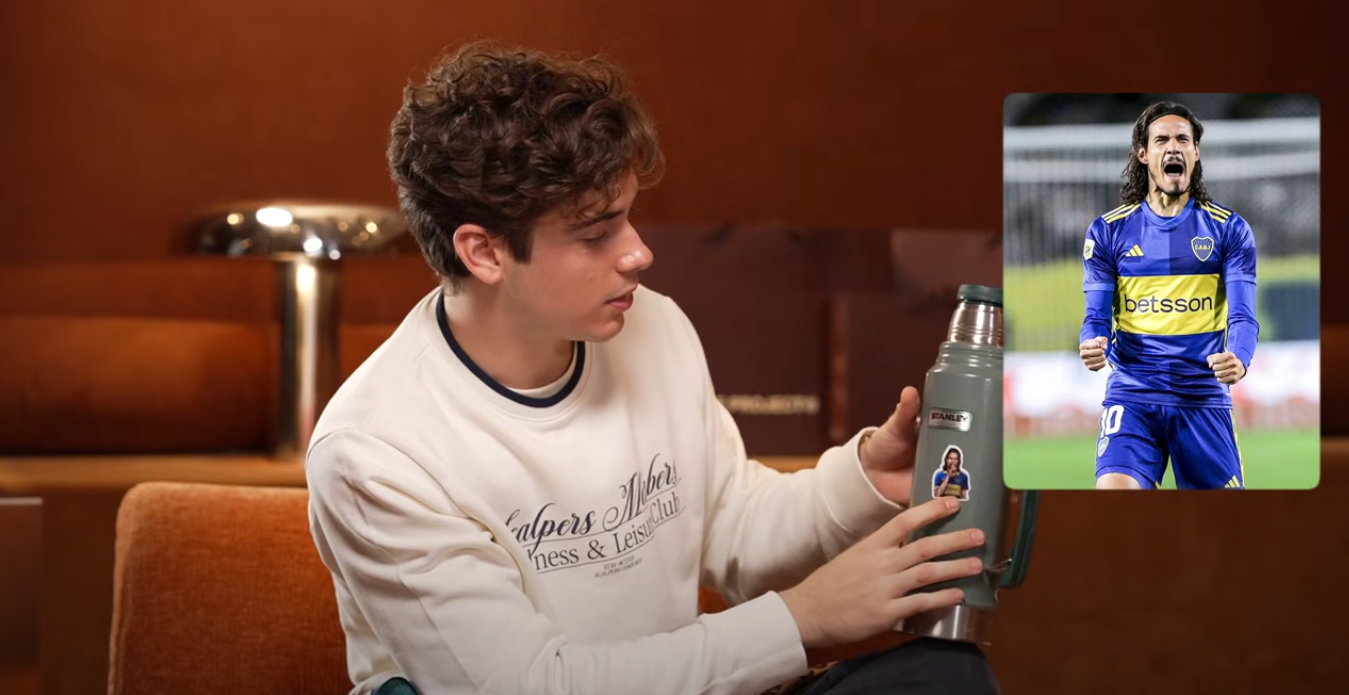 Acto seguido, procede a explicar su punto de vista: "Uruguayos hay muy pocos, no sé la población de Uruguay. Es como una provincia argentina, son como parte de Argentina". Los conductores le explican que en Uruguay viven tres millones de personas y responde mostrando su termo, donde tiene un pegotín de Edinson Cavani con la remera de Boca.