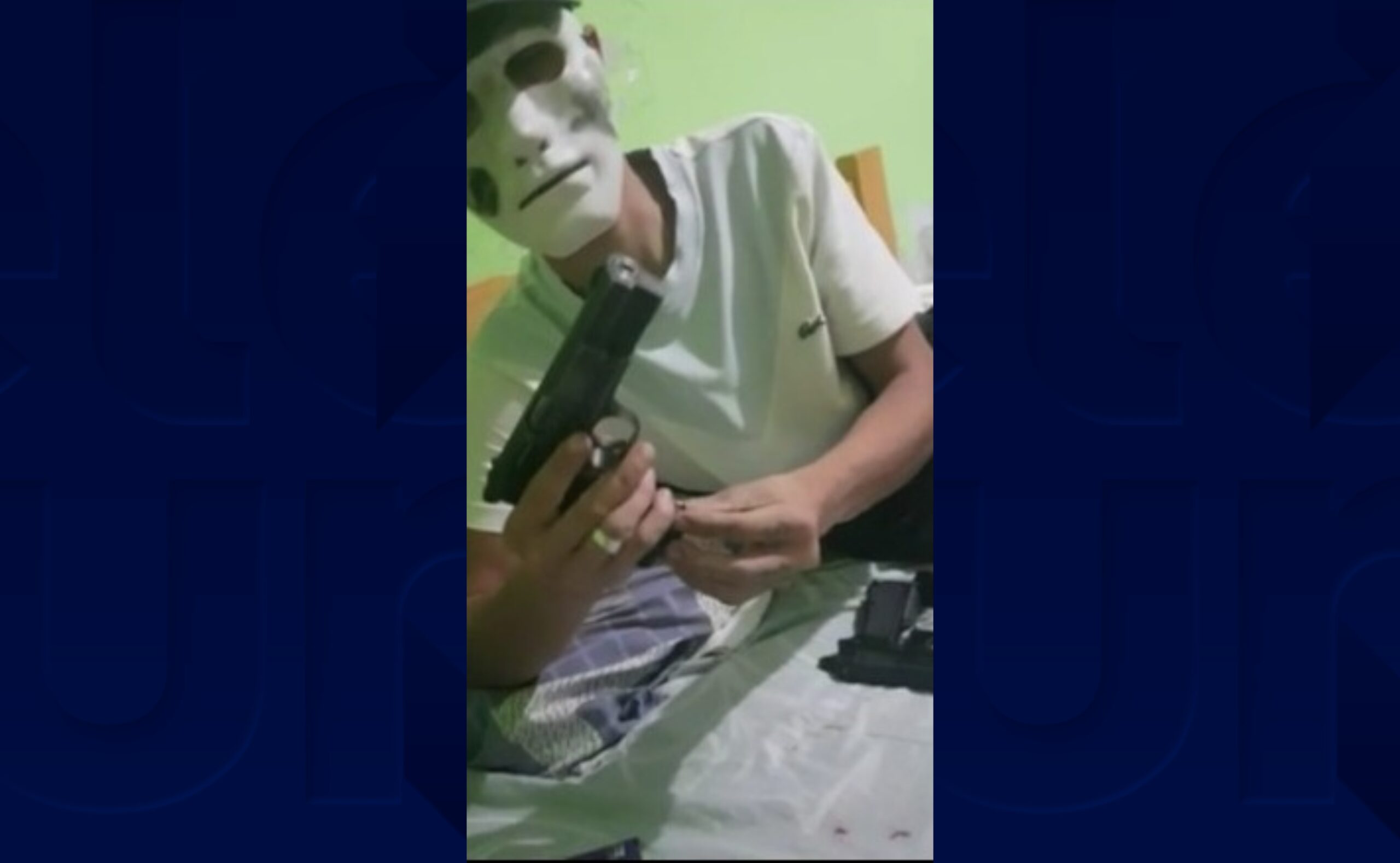 En un video difundido a través de Facebook y WhatsApp que le llegó a los vecinos del barrio y a medios locales, un delincuente enmascarado porta un arma y varios cargadores amenazando a los vecinos saqueadores.