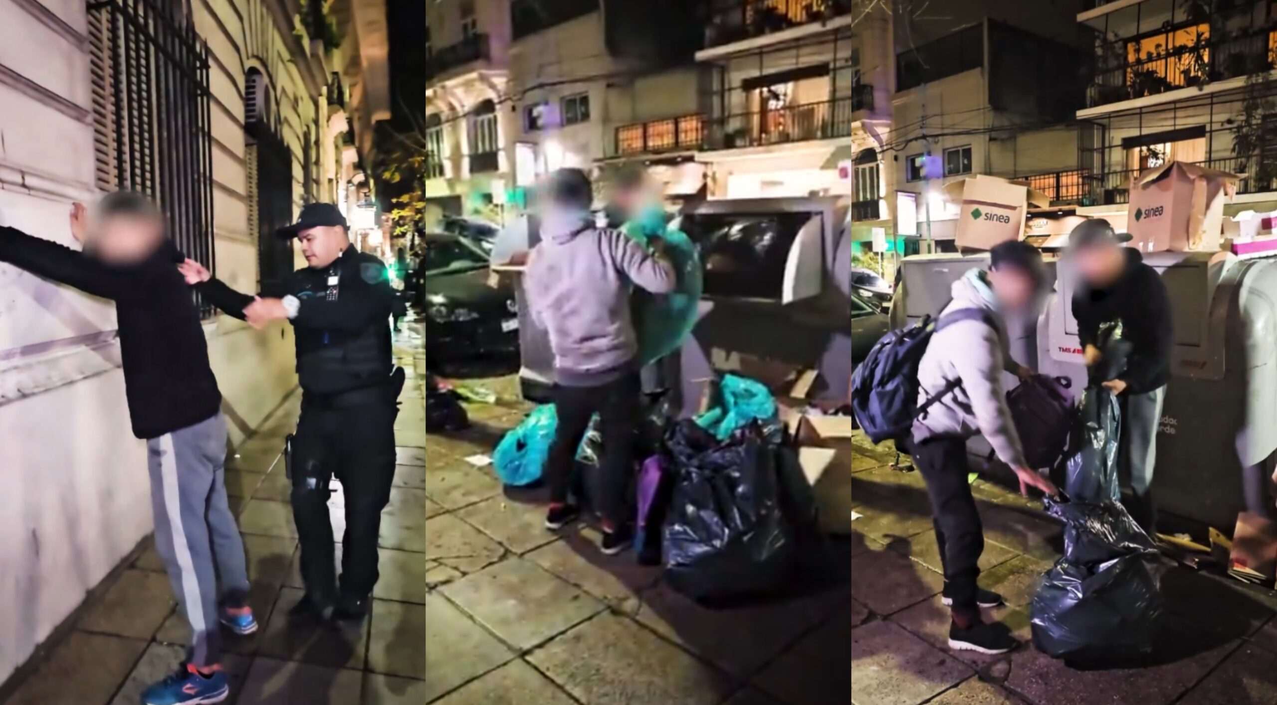 En la filmación, se ve a los efectivos revisando a los oriundos de Villa Fiorito y obligándolos a recoger la basura que rodea al contenedor.