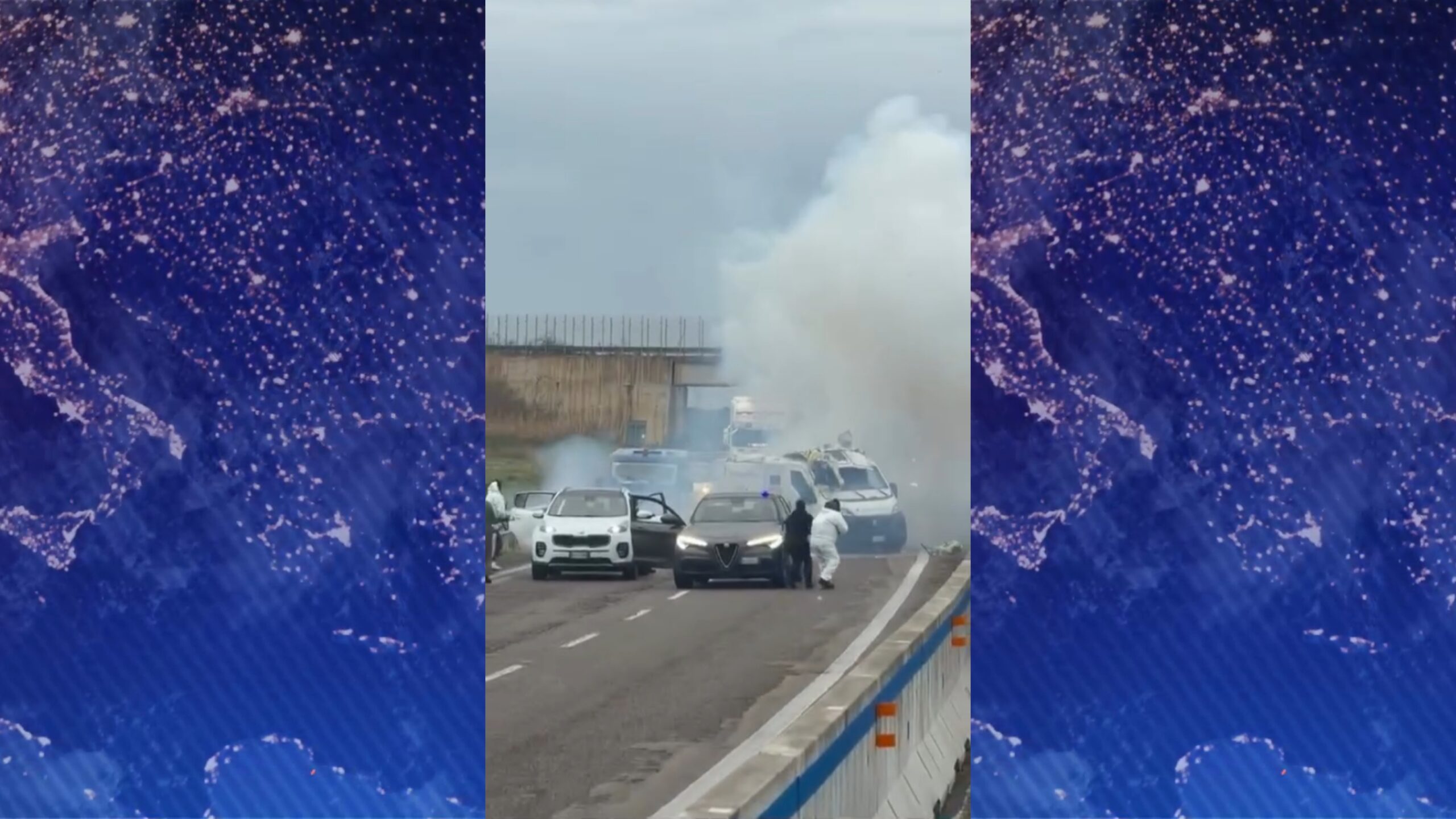 Tras esto, detuvieron en la ruta a dos vehículos blindados haciéndose pasar por agentes. Al menos cuatro personas armadas con Kalashnikovs acribillaron a balazos las dos camionetas de la empresa de seguridad Battistolli y volaron las puertas usando explosivos, detallaron los medios.