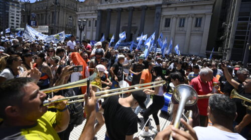 Los manifestantes respaldaron el petitorio que las centrales sindicales entregaron a la justicia contra el decreto que incluye la reforma de más de 300 leyes y entrará en vigor el viernes, en el marco de un fuerte ajuste fiscal.