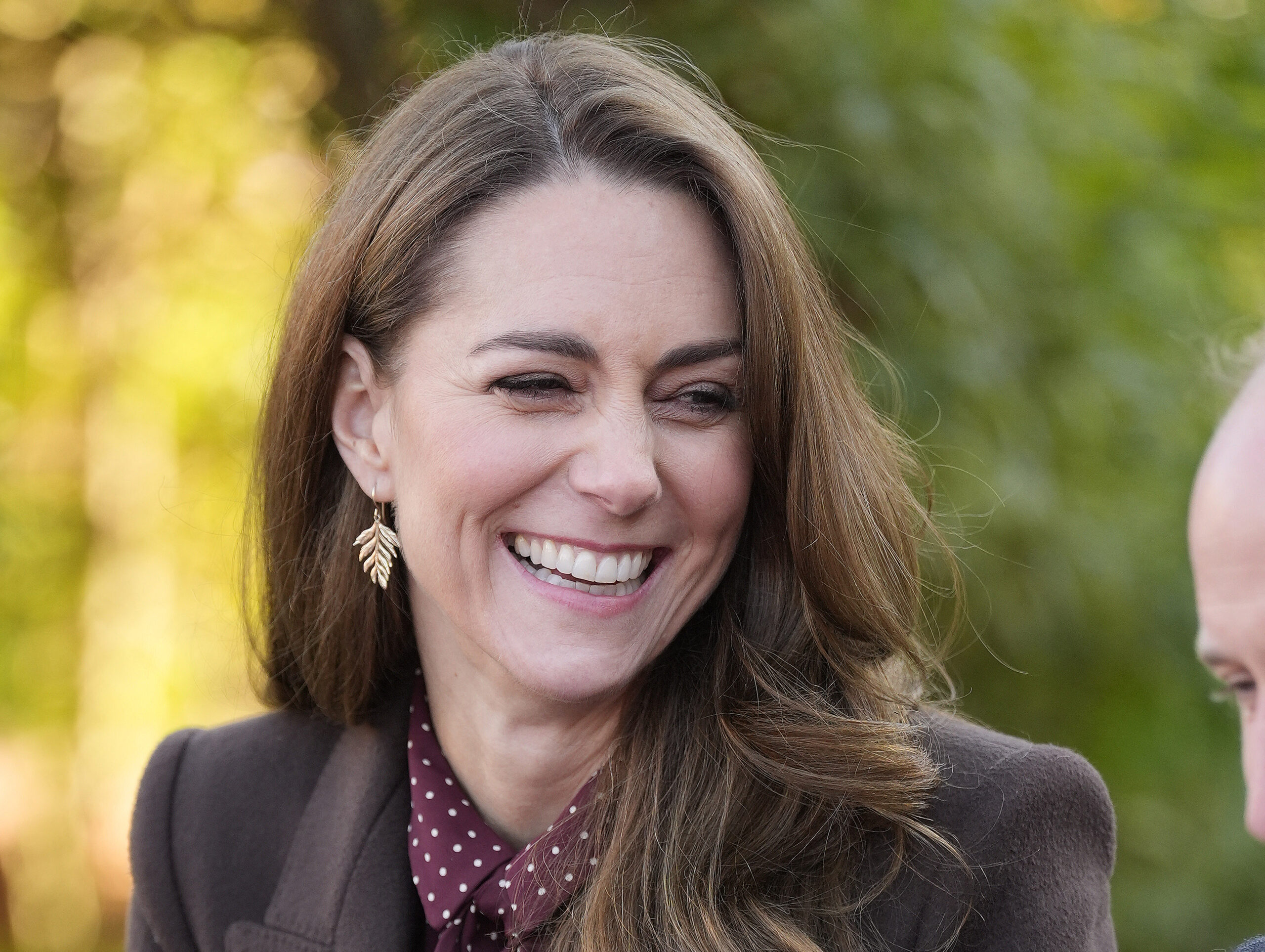 Las imágenes muestran a Catalina el jueves luciendo un largo abrigo de color marrón cuando llega al centro sociocultural tras encontrarse con las familias.