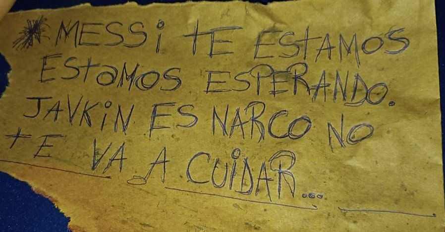 Además de los disparos, en el lugar se encontró un mensaje dedicado al capitán de la selección argentina, elegido Mejor Jugador del Mundial de Qatar 2022 y del Mundo por la FIFA: "Messi te estamos esperando, (el intendente de Rosario, Pablo) Javkin también es narco, no te va a cuidar".