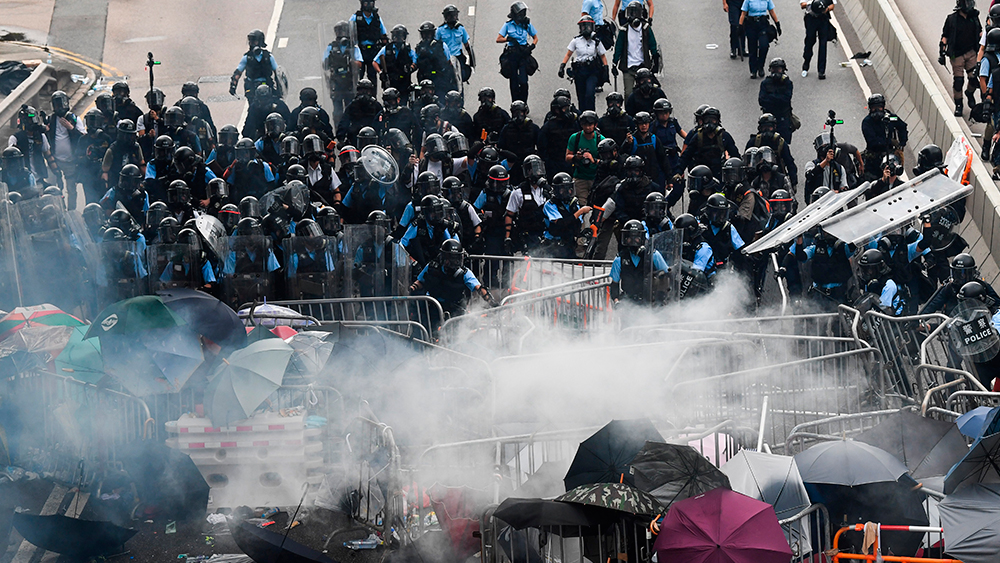 Las fuerzas de seguridad rechazaron a los manifestantes que intentaban entrar en el LegCo usando porras, gases lacrimógenas y balas de goma así como bolsas llenas de bolas de plomo.