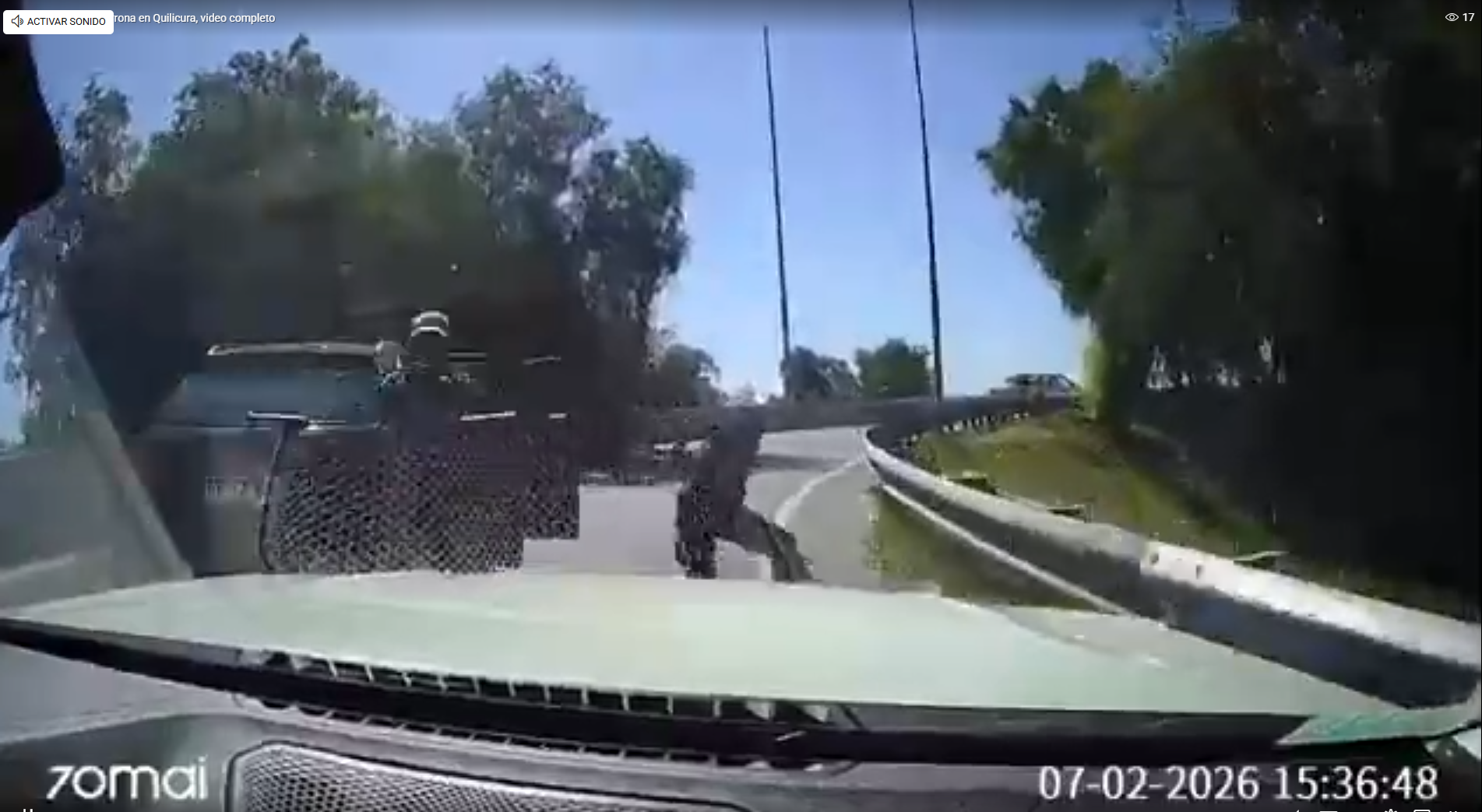 El hecho ocurrió el pasado sábado en la zona de Quilicura y quedó registrado por la cámara del vehículo. En las imágenes, a las que accedieron los medios chilenos, se ve que un auto negro detiene la marcha en el medio de la calle y bajan dos delincuentes armados.