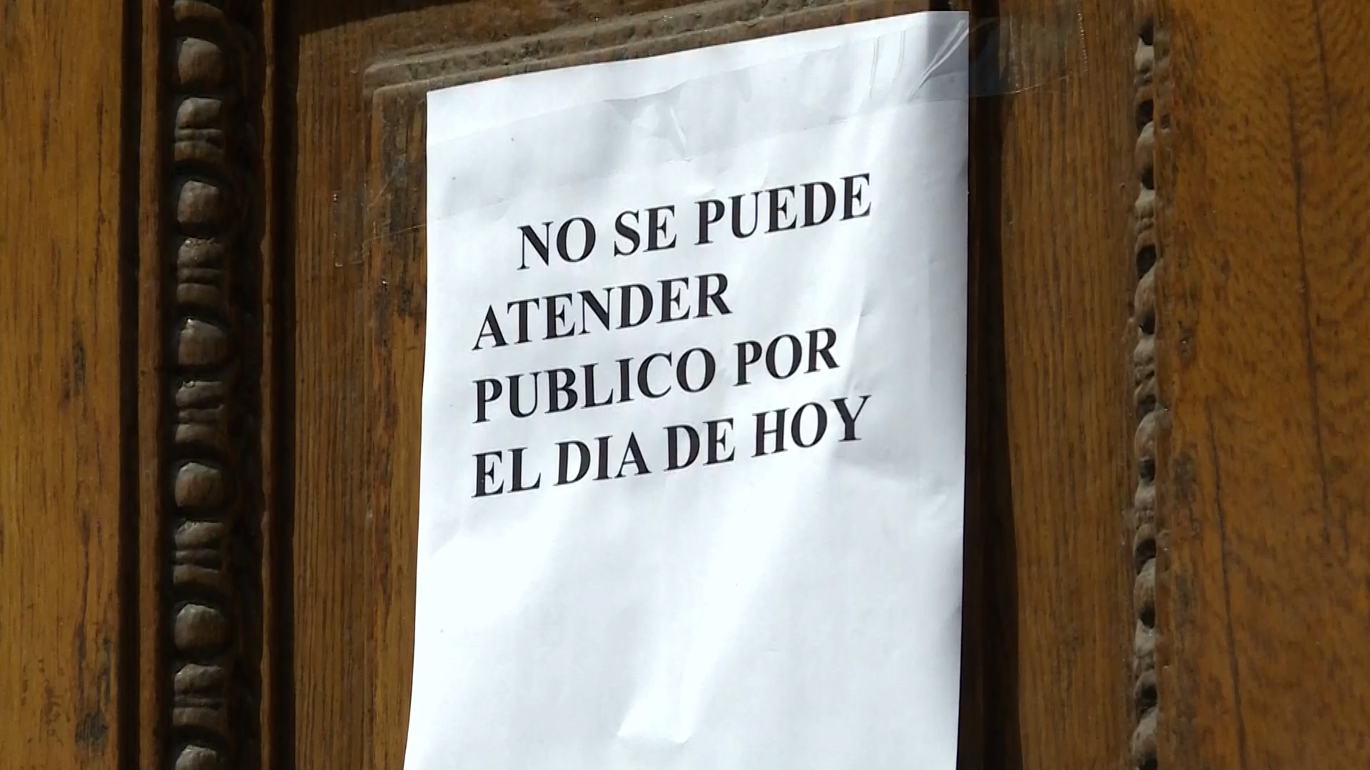 "No se puede atender público por el día de hoy", dice un cartel pegado en la puerta del edificio.