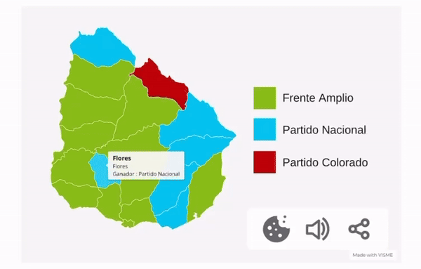 A medida que pasan las horas, los datos de la Corte Electoral comienzan a ampliarse y permiten nuevos análisis. En esta oportunidad, nos proponemos mirar cómo se ven los datos del escrutinio primario a la luz del mapa uruguayo: ¿qué partido fue el más votado en cada departamento?