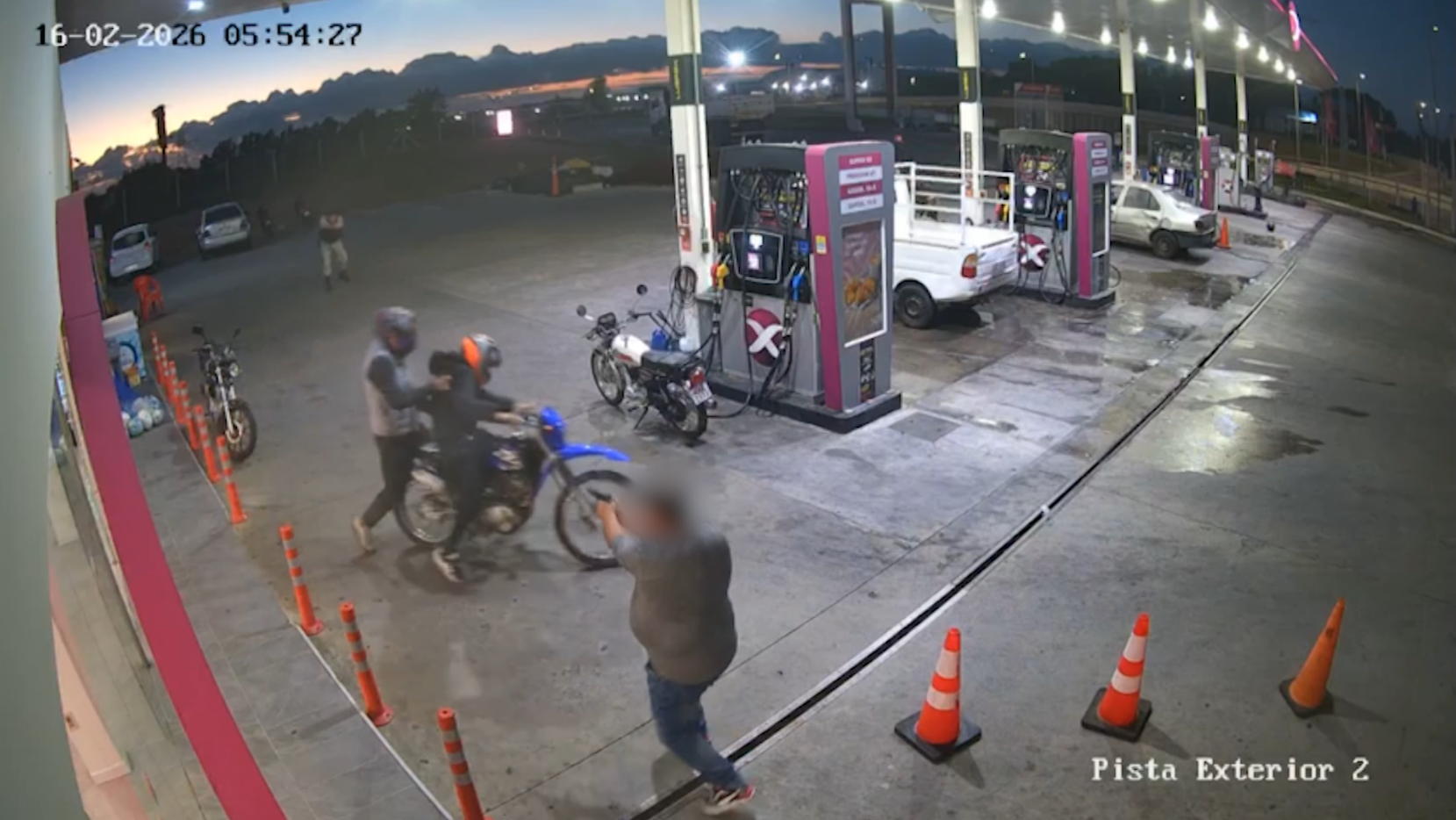 A las 6 de la mañana de este lunes los dos delincuentes en moto llegaron a la estación de Garzón y Ruta 102 con intención de robar el minimercado del lugar.