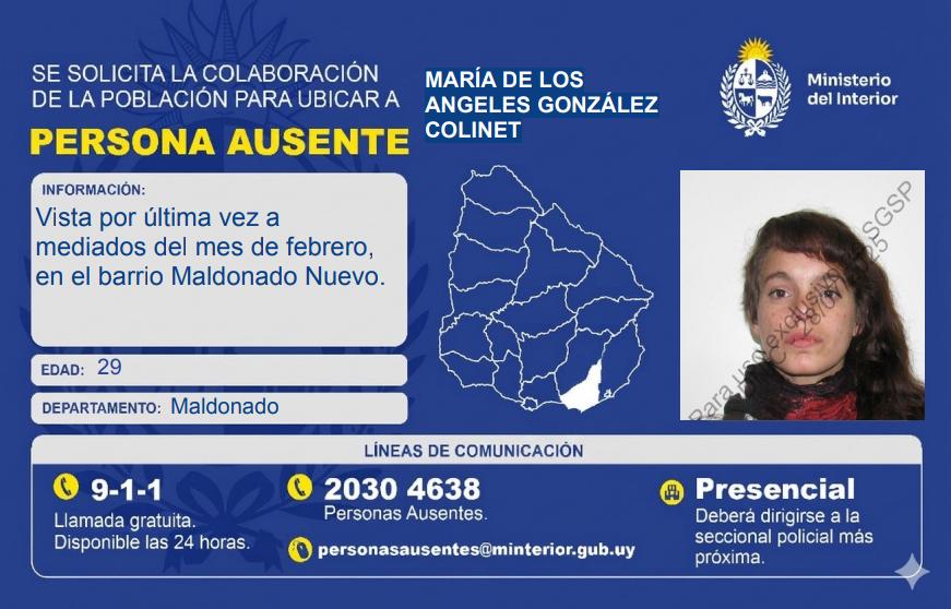 Fuentes del Ministerio del Interior indicaron a Telemundo que la denuncia de la desaparición de la mujer -llamada María de los Ángeles González- fue presentada el 13 de abril por un "allegado".
