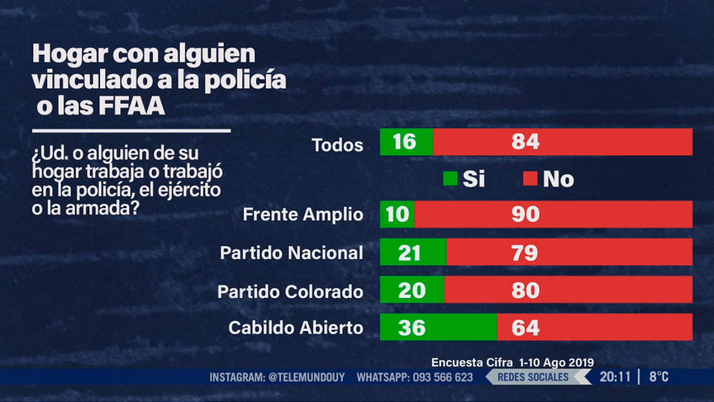 El 36 % de quienes votarían a Cabildo Abierto tiene alguna vinculación de este tipo, lo que refleja que no es un partido militar: pesa tanto el cuerpo militar como el agro.