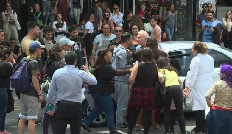 Un automovilista argentino quiso pasar en medio de la marcha.
