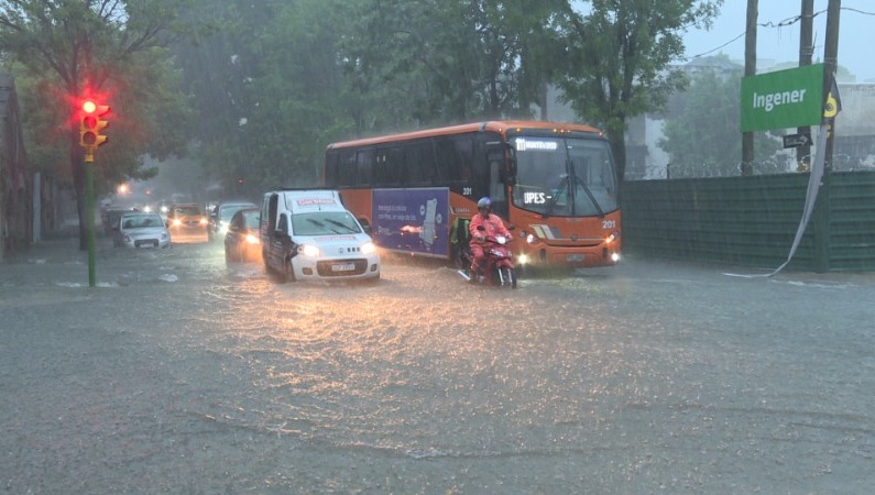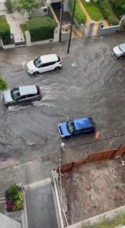 Una zona que habitualmente se inunda es la Avenida Libertador. Allí, a la altura de la calle La Paz, una joven debió subirse al techo del auto luego de que su vehículo quedara totalmente tapado por agua.