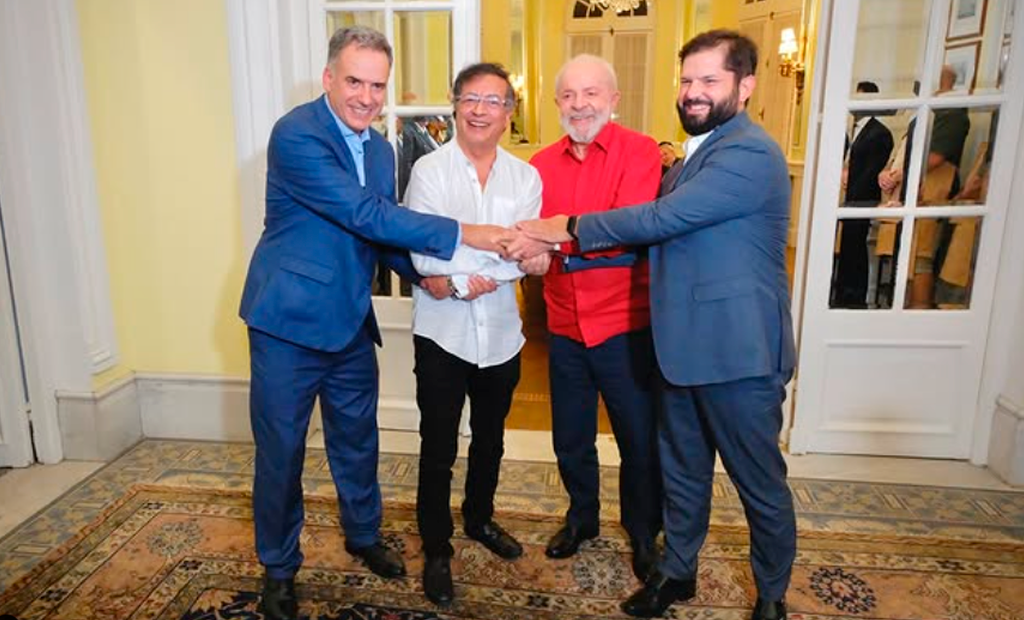 “En Montevideo, Uruguay, el Presidente Gustavo Petro se reunió con los Presidentes Lula, Boric y Orsi para fortalecer los lazos entre naciones y promover la unión en Latinoamérica. Allí los mandatarios continuaron lo tratado en el encuentro virtual que sostuvieron durante la semana. Colombia, Brasil, Chile y Uruguay, unidos por la democracia, y las sociedades más justas”, escribió el perfil oficial del presidente colombiano.
