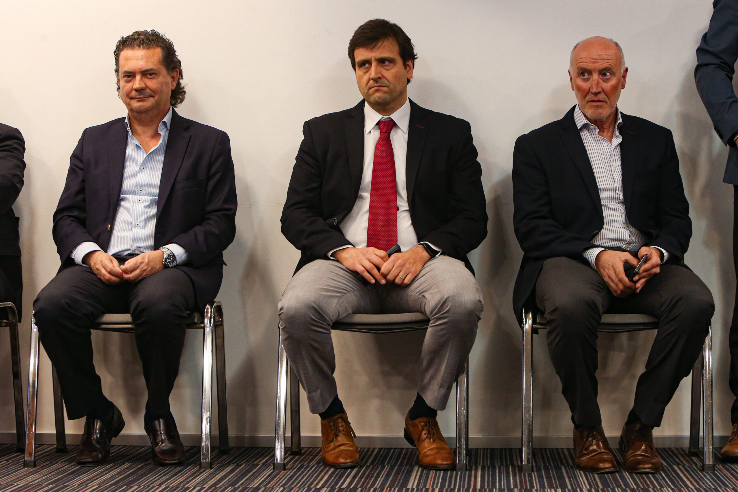 De izquierda a derecha, el prosecretario de Presidencia Rodrigo Ferres, el director de Comunicación Aparicio Ponce de Leon y el asesor Roberto Lafluf. Foto: FocoUy