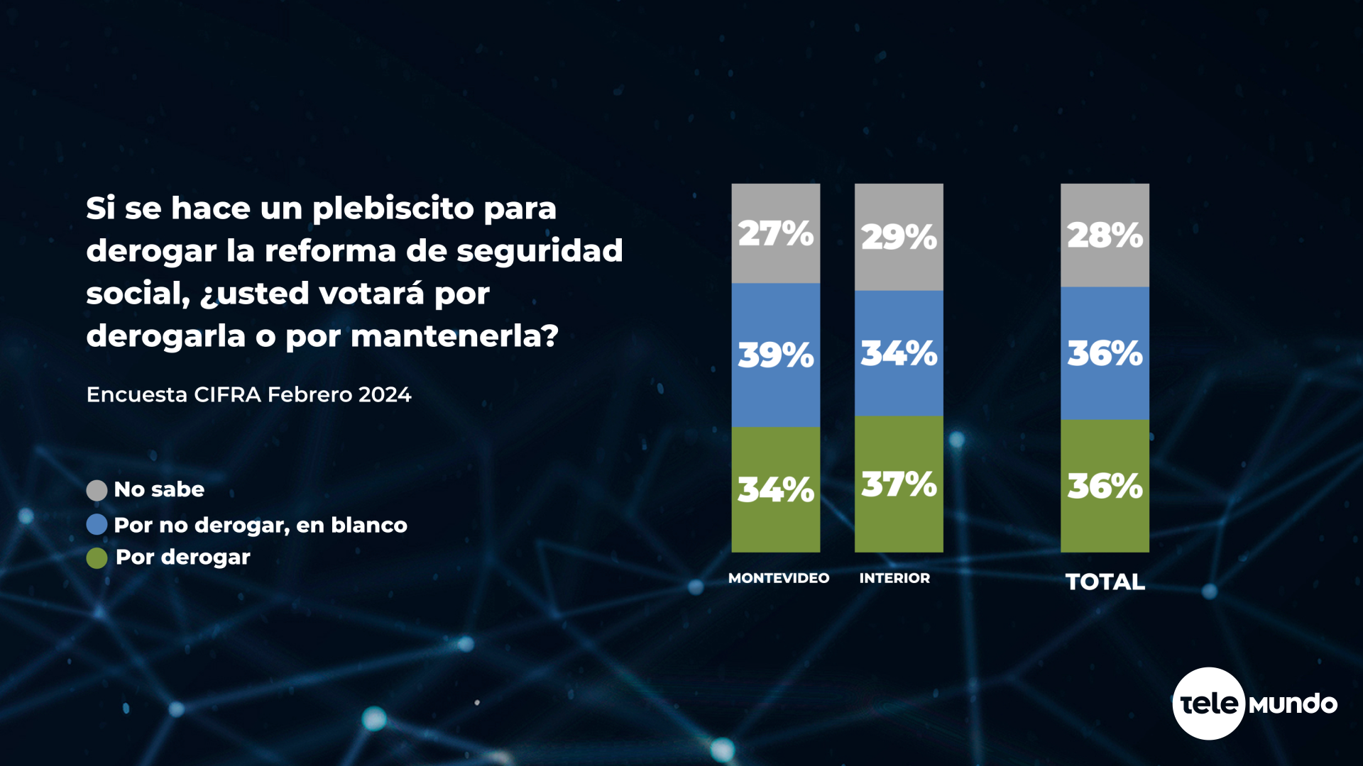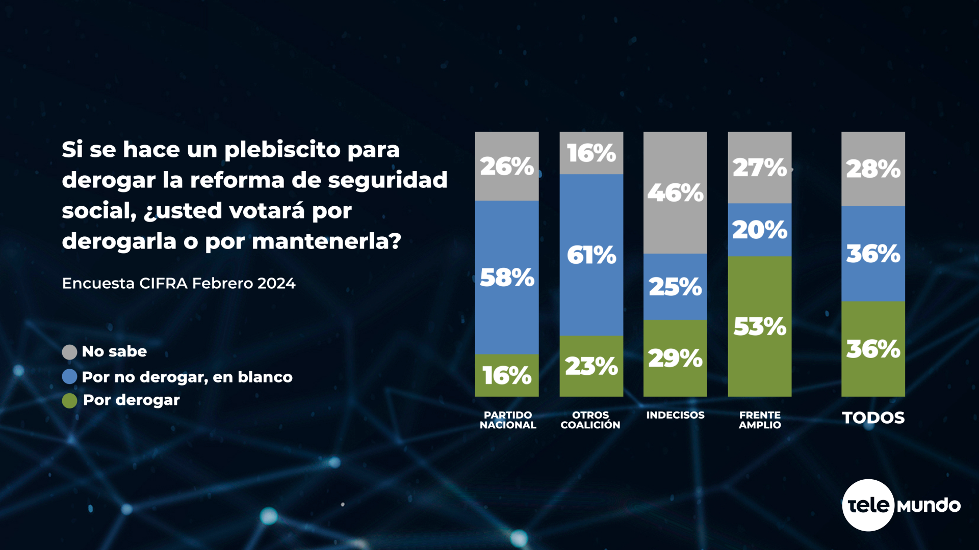 Se están juntando firmas para convocar a un plebiscito para derogar la reforma al sistema jubilatorio que se aprobó hace casi un año, en abril de 2023. Según sus promotores lograrán su objetivo y habrá plebiscito. ¿Qué harían los electores si en octubre, junto con las elecciones nacionales, pudieran optar por poner una papeleta a favor de la derogación de la reforma jubilatoria?