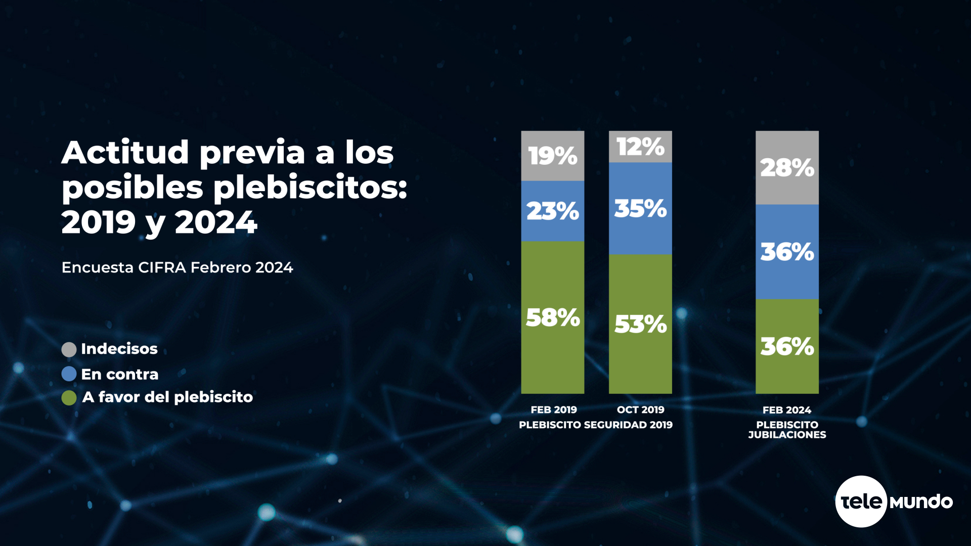 Esta nota presenta los resultados de una encuesta nacional telefónica (a teléfonos fijos y celulares) de CIFRA en todo el país: 1001 entrevistados entre los días 1 y 17 de febrero de 2024.