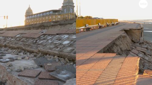 Video: colapsó parte del muro de la rambla de Carrasco tras los fuertes vientos del fin de semana