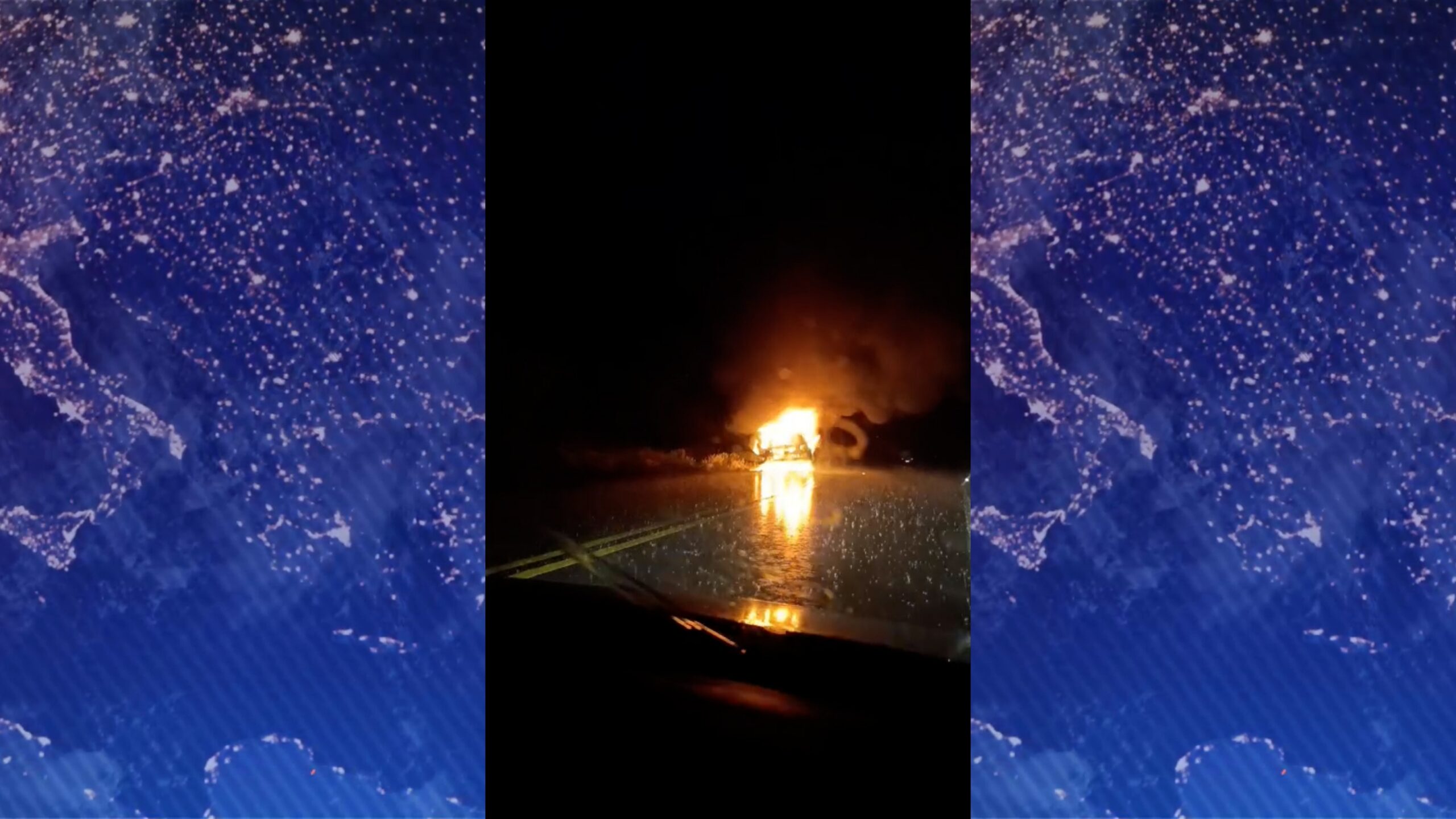 Al llegar, se encontraron con que un camión, que circulaba con destino a Melo, estaba sobre la banquina con su cabina prendida fuego.