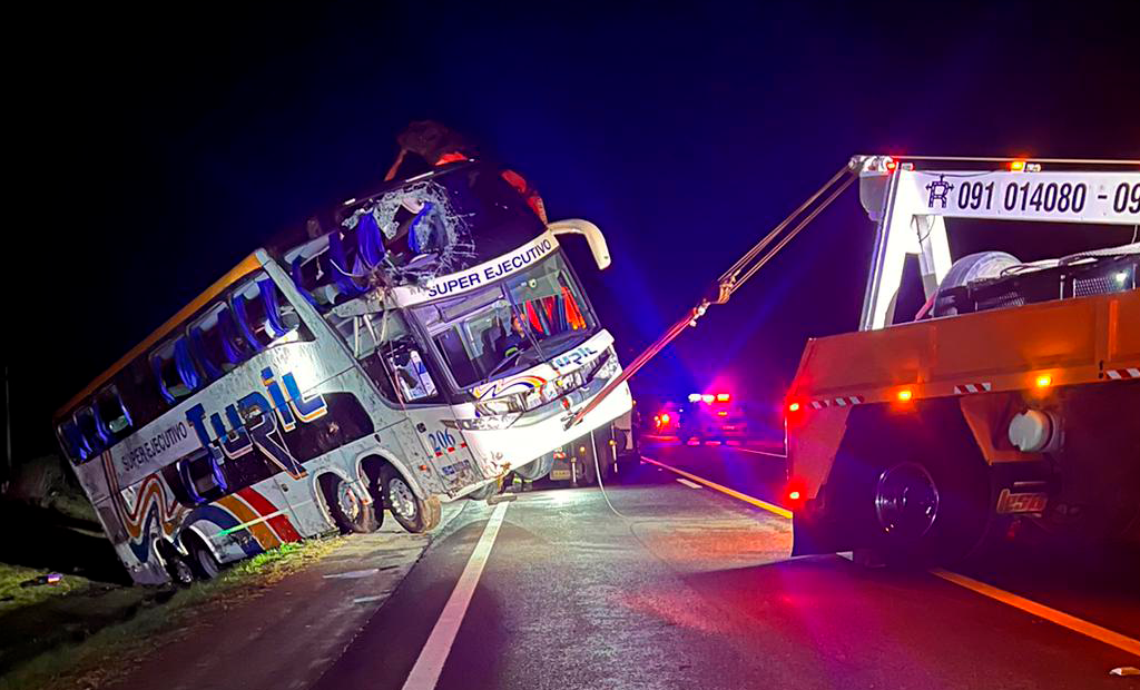 Allí, por causas que se intentan establecer, el ómnibus, que circulaba de sur a norte, despistó y luego volcó sobre la franja natural al costado de la ruta.