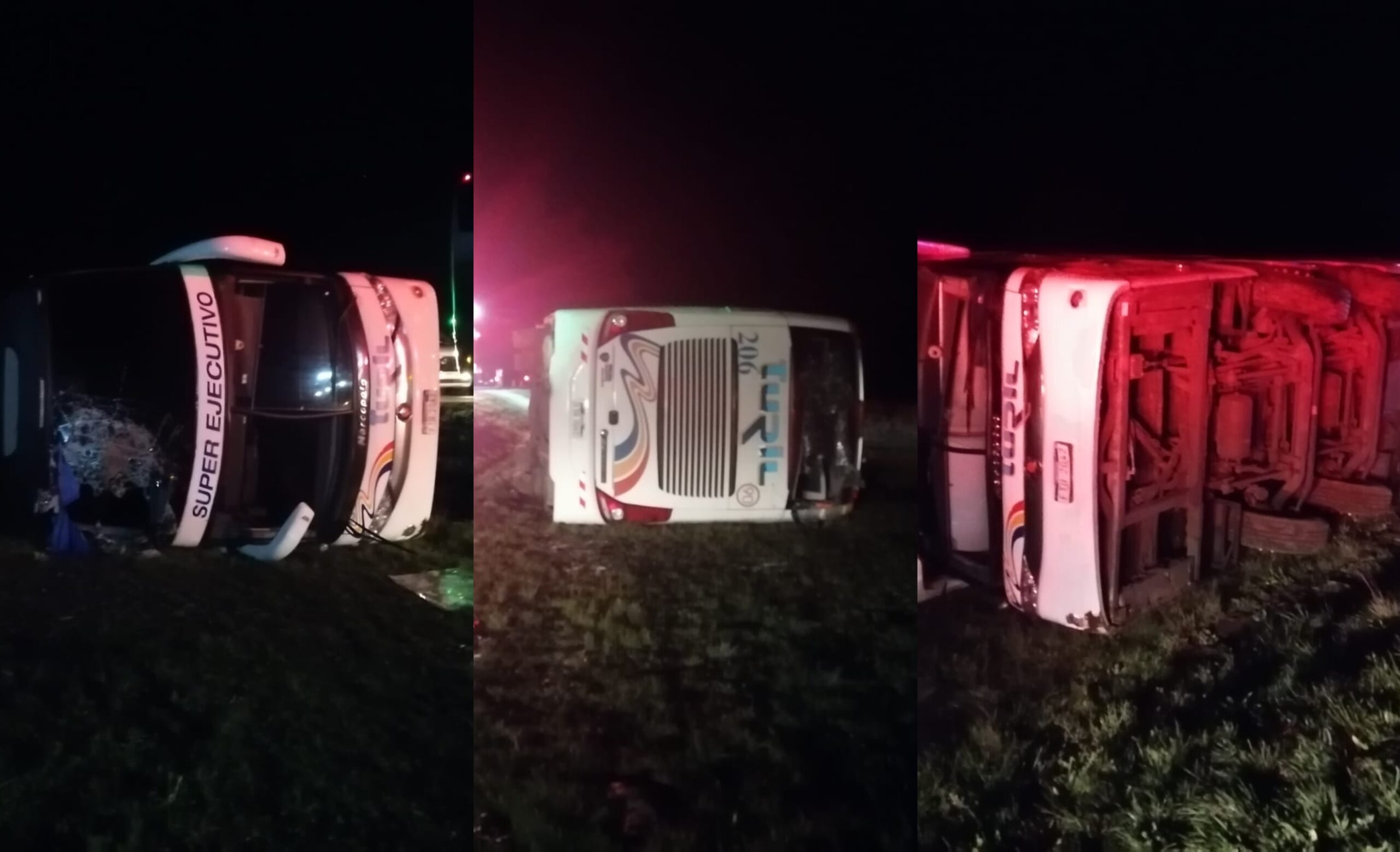 Un ómnibus de la empresa Turil volcó durante la madrugada de este martes en la Ruta 5 y varias personas resultaron lesionadas.