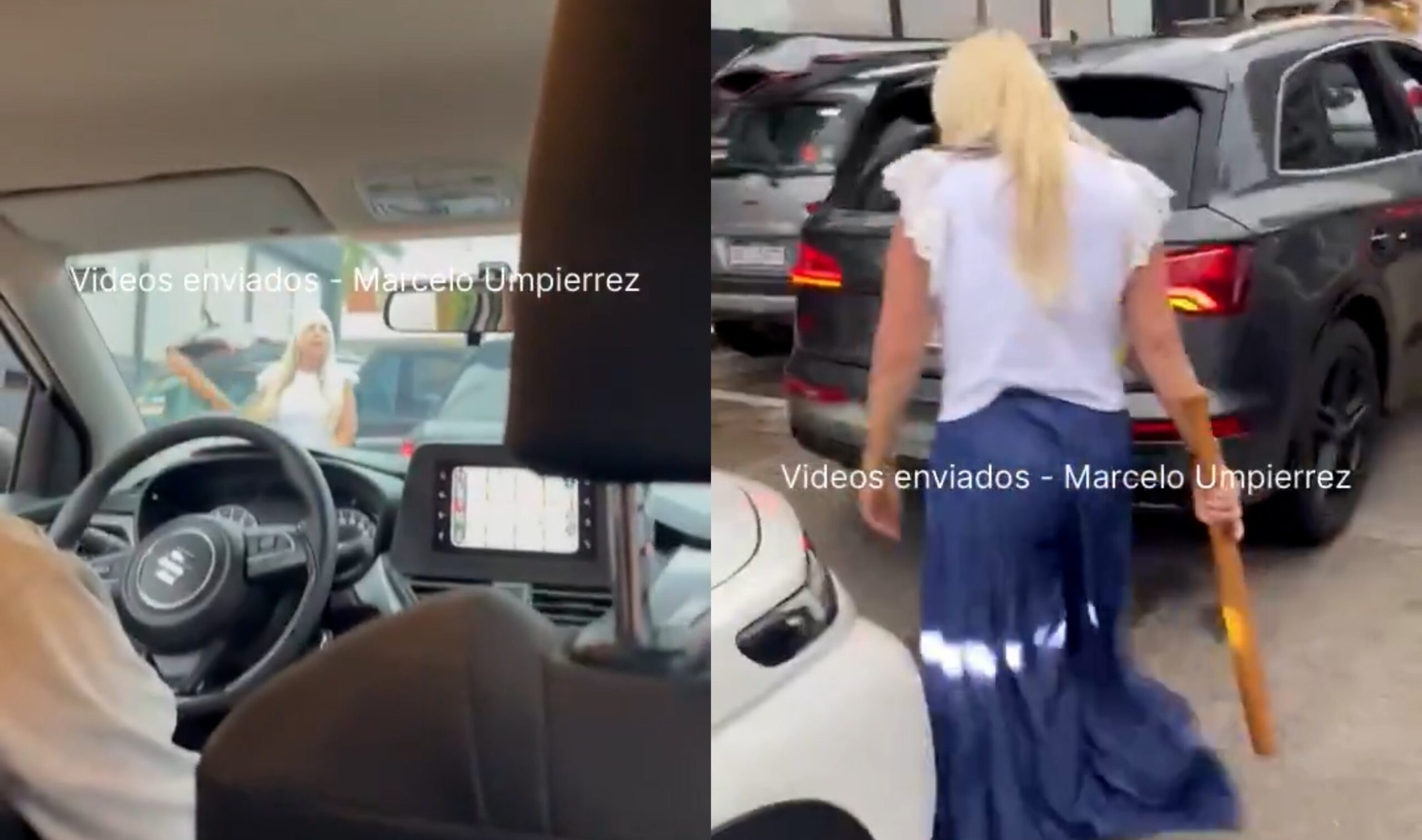 Las imágenes que se pueden ver en los videos que circulan en redes sociales muestran que, en el medio de bocinazos y gritos, desde una camioneta con matrícula argentina descendió su conductora y tomó un bate de béisbol.
